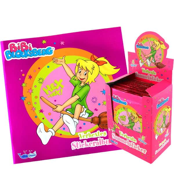 Álbum (Version Alemana) + caja de 50 sobres de la colección de cromos "Blue Ocean Bibi Blocksberg". Cada sobre contiene 5 cromos.