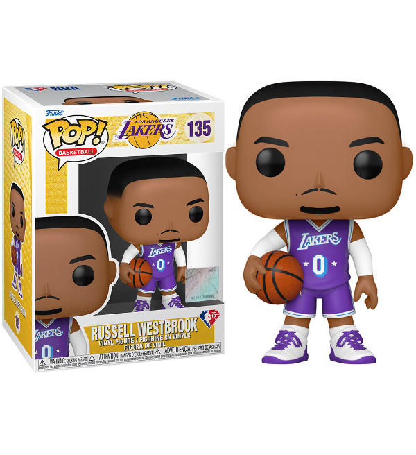 Funko POP! "Basketball 135 NBA - Russel Westbrook Los Angeles Lakers". La figura de vinilo mide aproximadamente 9 cm de alto y viene en una caja con ventana.