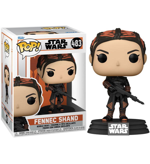 Funko POP! "Star Wars 483 - The Mandalorian - Fennec Shand". La figura de vinilo mide aproximadamente 9 cm de alto y viene en una caja con ventana.