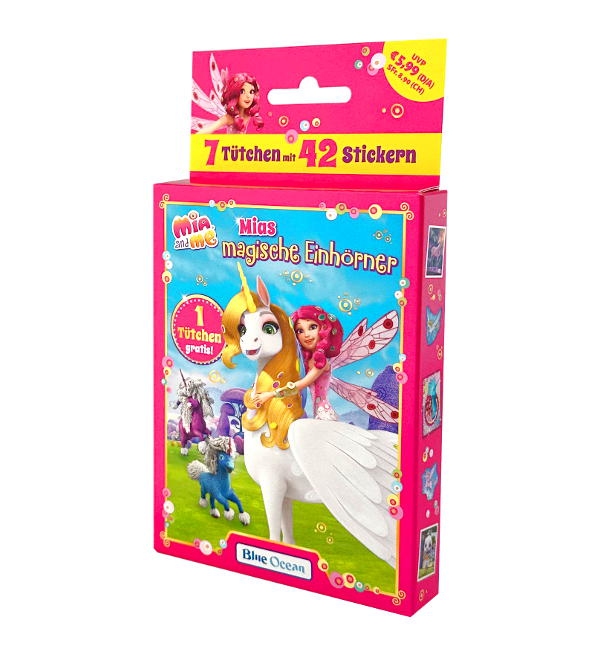 Eco-Blister de 7 sobres de la colección de cromos "Mia and me - Mias Magische Einhörner (2023)". Cada sobre contiene 6 cromos.