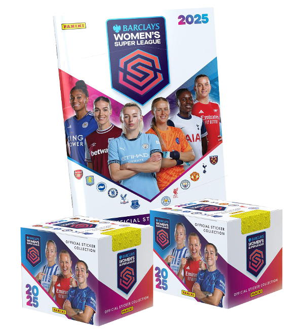 Álbum + 2 cajas (=100 sobres) de la colección de cromos "Panini Barclays Women’s Super League 2025". Cada sobre contiene 5 cromos.