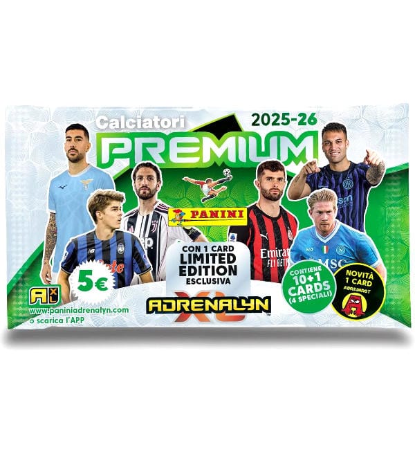 Premium Pack de la colección "Panini Calciatori Adrenalyn XL 2025-26" Trading Cards que incluye: