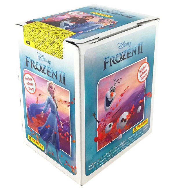 Caja de 36 sobres de la colección de cromos + cards Panini Disney Frozen 2 (2022). Cada sobre contiene 4 cromos + 1 card.