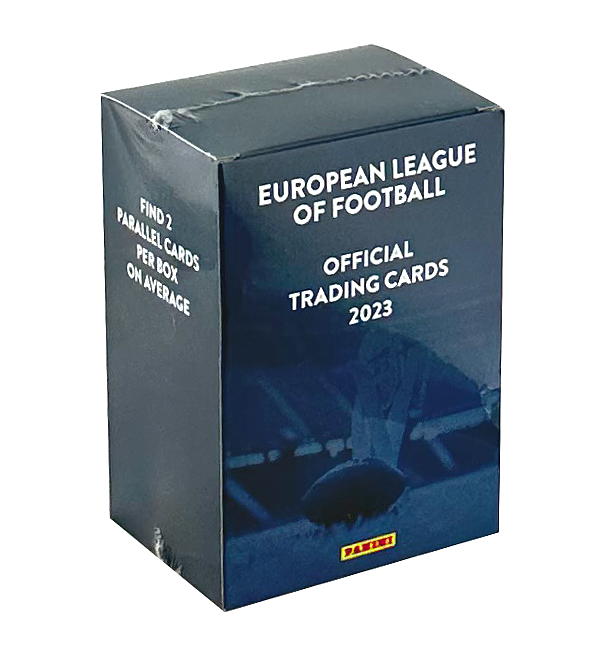 Blaster Box de 6 sobres de la colección "Panini European League of Football 2023" Trading Cards. Cada sobre contiene 6 cartas, lo que hace un total de 36 cartas por caja.