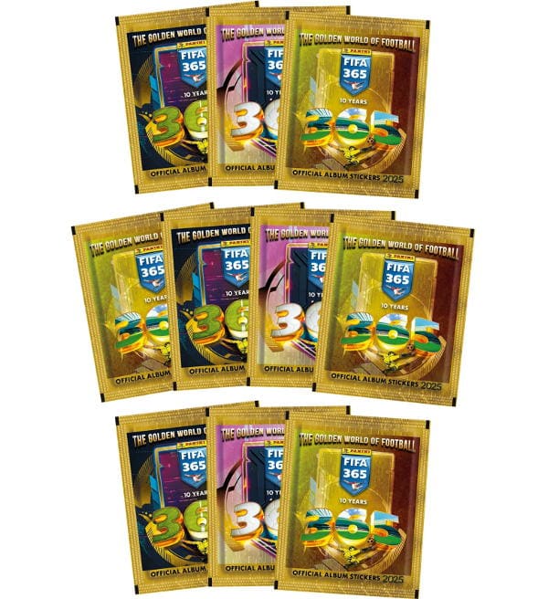 10 sobres de la colección de cromos "Panini FIFA 365 2025". Cada sobre contiene 5 cromos.