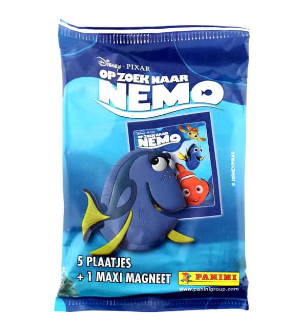 Bolso de la colección de cromos "Panini Findet Nemo" con el siguiente contenido: