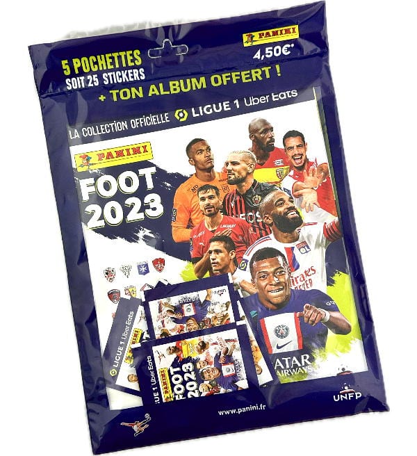Starter Pack de la colección de cromos "Panini Foot 2023 Ligue 1". Cada sobre contiene 5 cromos.