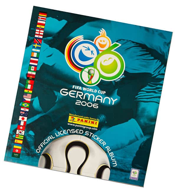 Álbum de la colección de cromos "Panini Alemania 2006". Se pueden pegar un total de 596 adhesivos en el álbum "Panini World Cup 2006".