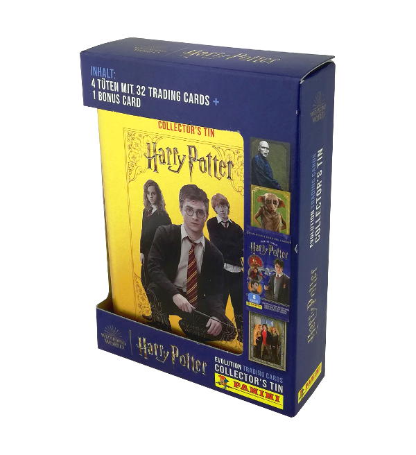 Pocket Tin "Oro" de la colección Panini Harry Potter Evolution Trading Cards. Cada Pocket Tin contiene 32 tarjetas + 1 Bonus Card.