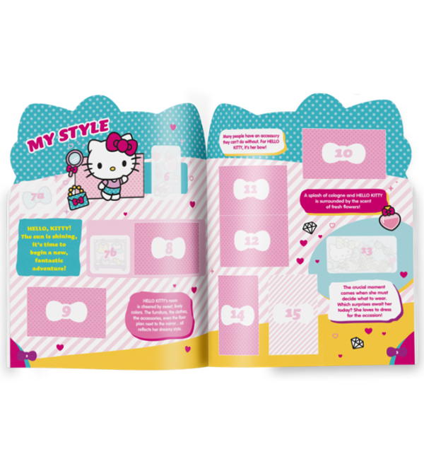 Álbum alemán + caja de 36 sobres de la colección de cromos Panini Hello Kitty 50th Anniversary. Cada sobre contiene 5 cromos.