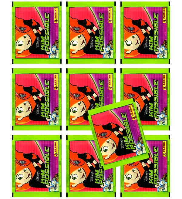 10 sobres de la colección de cromos "Panini Kim Possible". Cada sobre contiene 5 cromos.