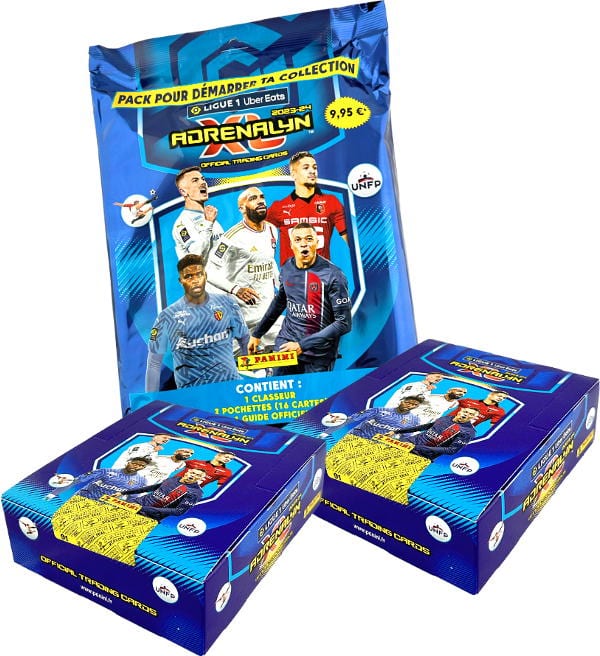 Starter Pack + 2 cajas (=36 sobres) de la colección "Panini Ligue 1 Adrenalyn XL 2023-24" Trading Cards que incluye: