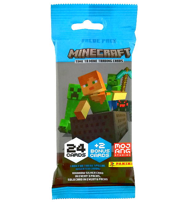 Sobre Fatpack de la colección Panini Minecraft 2 Time To Mine (2022) Trading Cards con 24 cartas + 2 Bonus Cards.