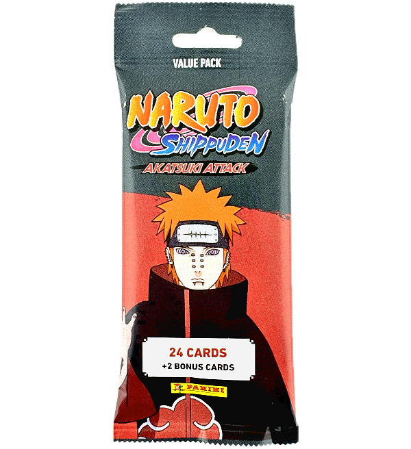 Sobre Fat Pack de la colección Panini Naruto Shippuden Akatsuki Attack Trading Cards con 24 cartas + 2 Bonus Cards.
