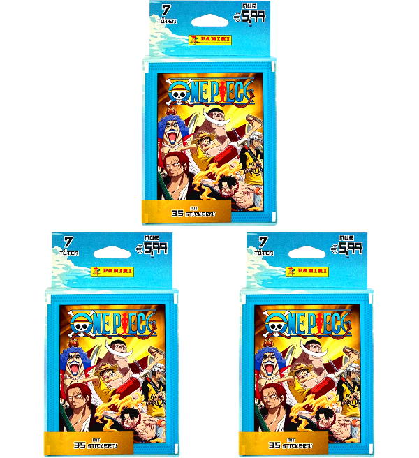 3 x Eco-Blister (=21 sobres) de la colección de cromos "Panini One Piece Summit War". Cada sobre contiene 5 cromos.