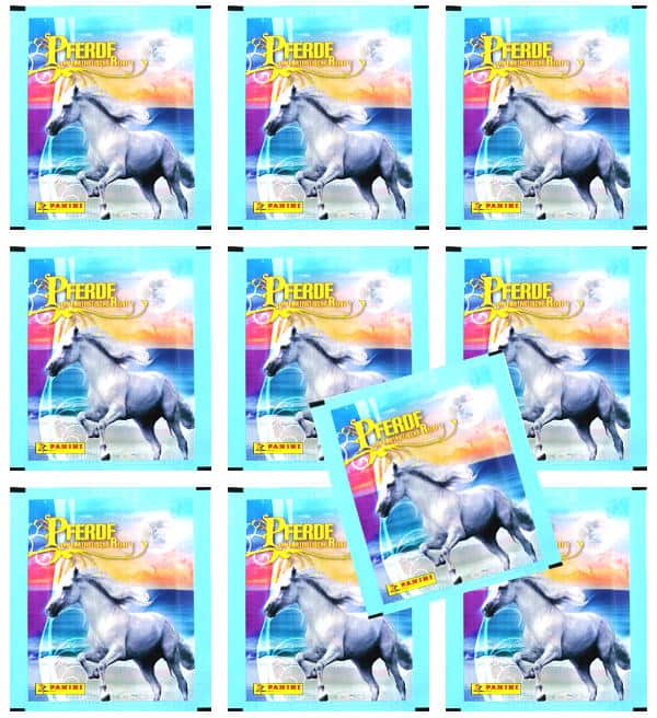 10 sobres de la colección de cromos "Panini Pferde eine fantastische Reise". Cada sobre contiene 5 cromos.