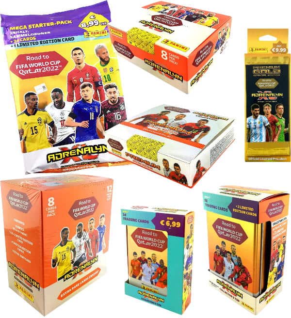 Mega-Bundle de la colección "Panini Road to World Cup Qatar 2022 Adrenalyn XL" Trading Cards que incluye: