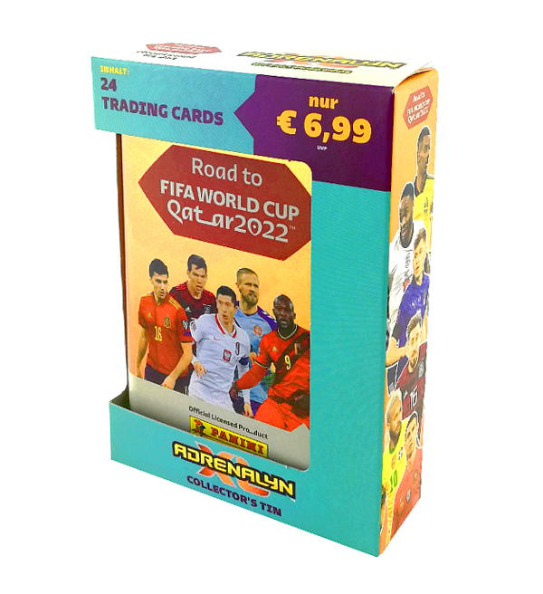 Pocket Tin de la colección "Panini Road to World Cup Qatar 2022 Adrenalyn XL" Trading Cards que incluye: