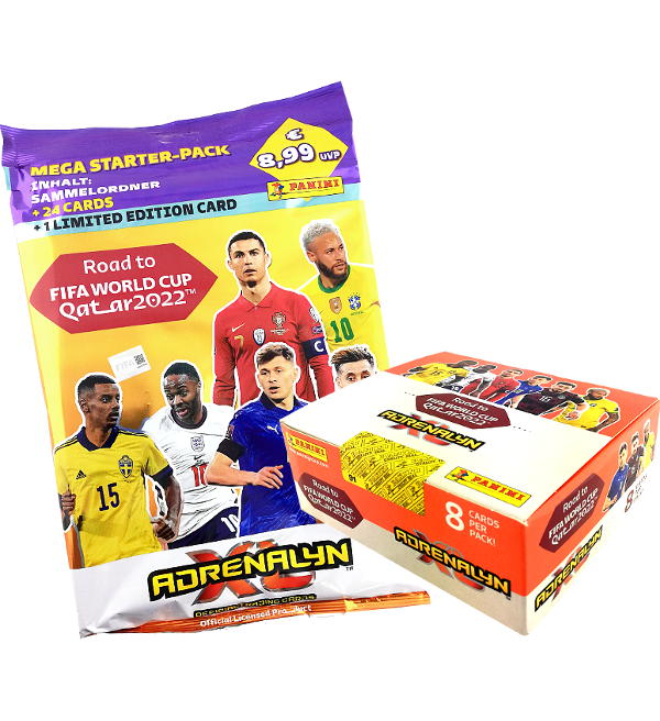 Starter Pack + caja de 24 sobres de la colección "Panini Road to World Cup Qatar 2022 Adrenalyn XL" Trading Cards que incluye: