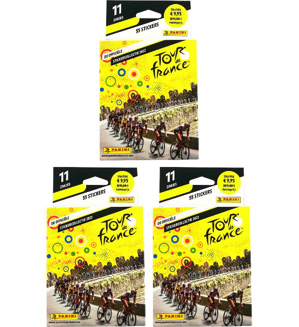 3 x Eco-Blister (=33 sobres) de la colección de cromos "Panini Tour de France 2022". Cada sobre contiene 5 cromos.