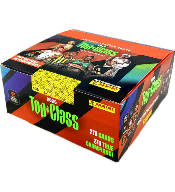 1 Caja (=24 sobres) de la colección "Panini Turkish Airlines EuroLeague Top Class 2025" Trading Cards. Cada sobre contiene 8 cartas.