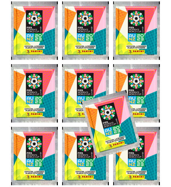 10 sobres de la colección de cromos "Panini Womens World Cup 2023". Cada sobre contiene 5 cromos.