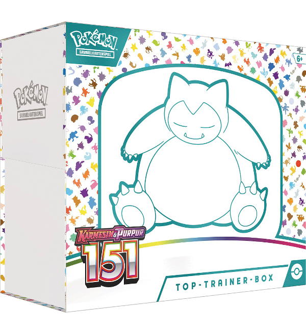 Colección "Karmesin & Purpur 151 - Top Trainer Box" (alemán) del juego de cartas coleccionables Pokémon.