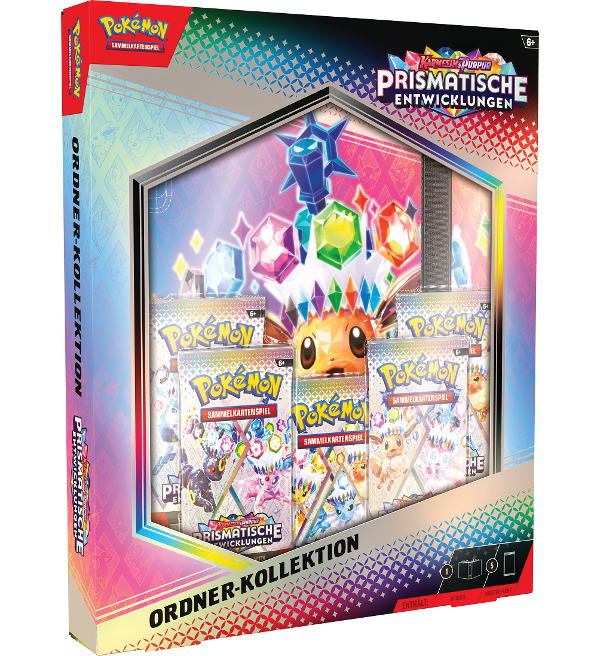 Colección "Karmesin & Purpur Prismatische Entwicklungen - Ordner-Kollektion" (alemán) del juego de cartas coleccionables Pokémon.