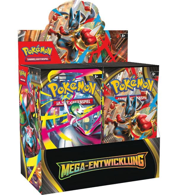 Caja de 36 sobres (=360 cards) sellada original del juego de extensión "Mega-Entwicklung 01". Cada sobre contiene 10 cartas.