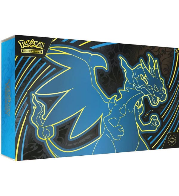 Colección "Mega Glurak X-ex Ultra--Premium-Kollektion" (alemán) del juego de cartas coleccionables Pokémon.