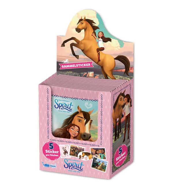 Caja de 36 sobres de la colección de cromos Spirit Riding Free. Cada sobre contiene 5 cromos.