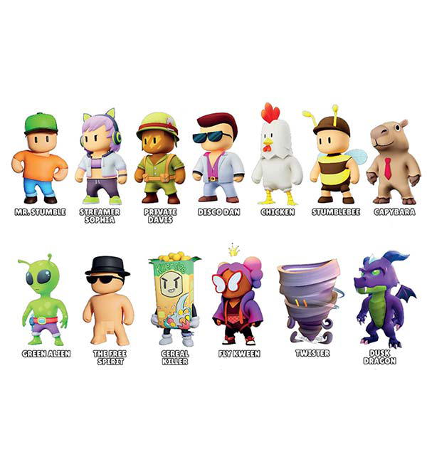 Caja de la colección "Stumble Guys Series 2 - 3D Mini Figures" que incluye: