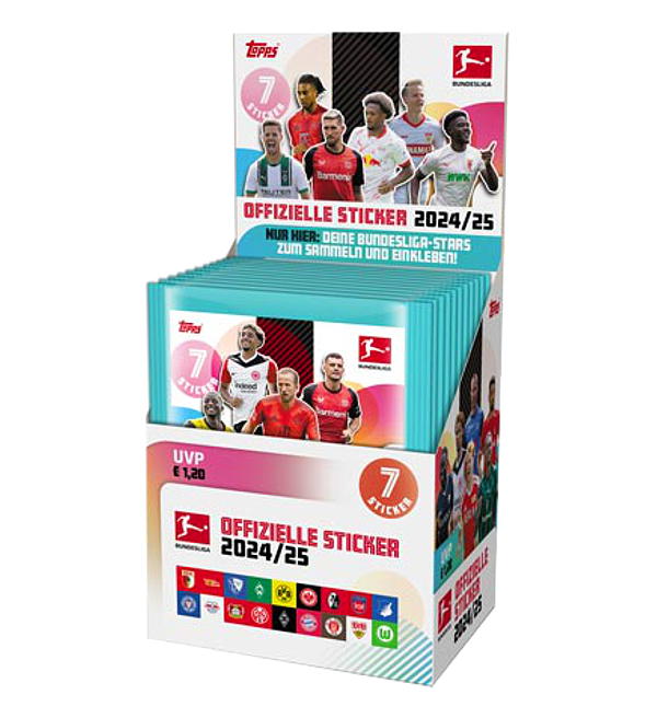 1 caja (=50 sobres) de la colección de cromos Topps Bundesliga 2024/2025. Cada sobre contiene 7 cromos.