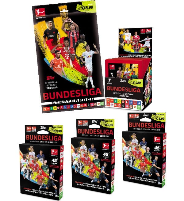 Mega-Bundle "STARTER" de la colección de cromos Topps Bundesliga 2025/2026 que incluye: