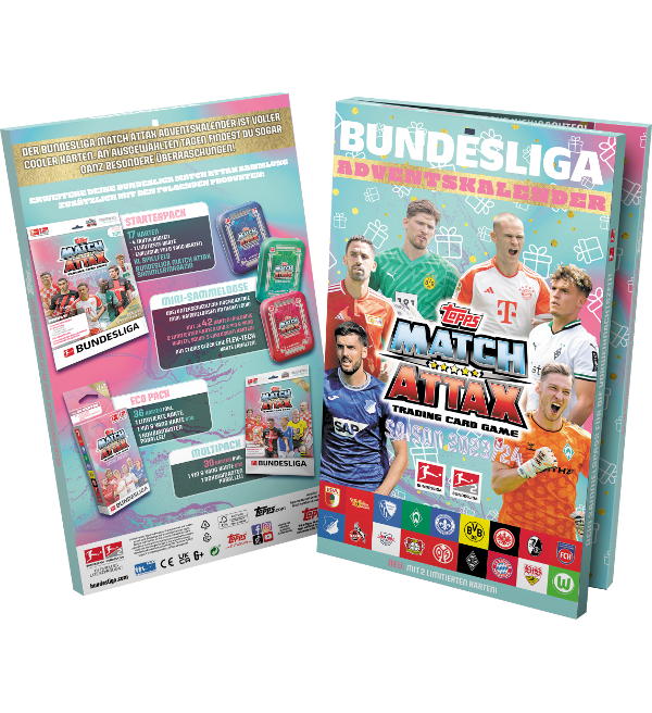 El calendario de adviento de la colección "Topps Bundesliga Match Attax 2023/24" Trading Cards con 114 cards + 9 cartes exclusivas + 2 Limited Edition Cards.
