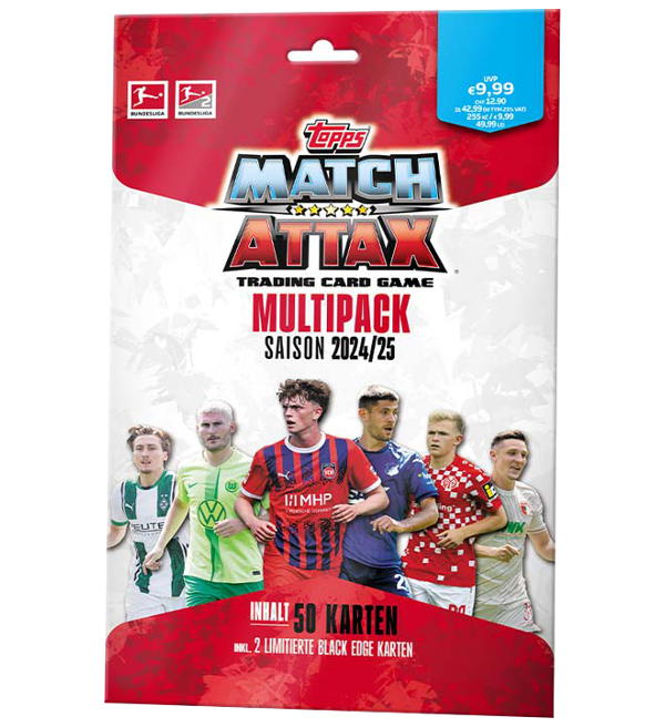 Multipack de la colección "Topps Bundesliga Match Attax 2024/25" Trading Cards con 50 cards (incl. 2 Limited Edition Cards).