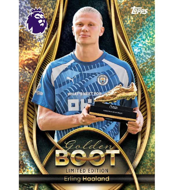Golden Boot Tin de la colección "Topps Premier League 2026 Debut Edition" Trading Cards que incluye: