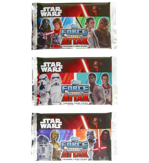 Caja con 24 paquetes de Topps Star Wars Force Attax Ep. 7. Cada paquete contiene 8 cartas coleccionables, por lo que este expositor viene con 192 cartas en total.