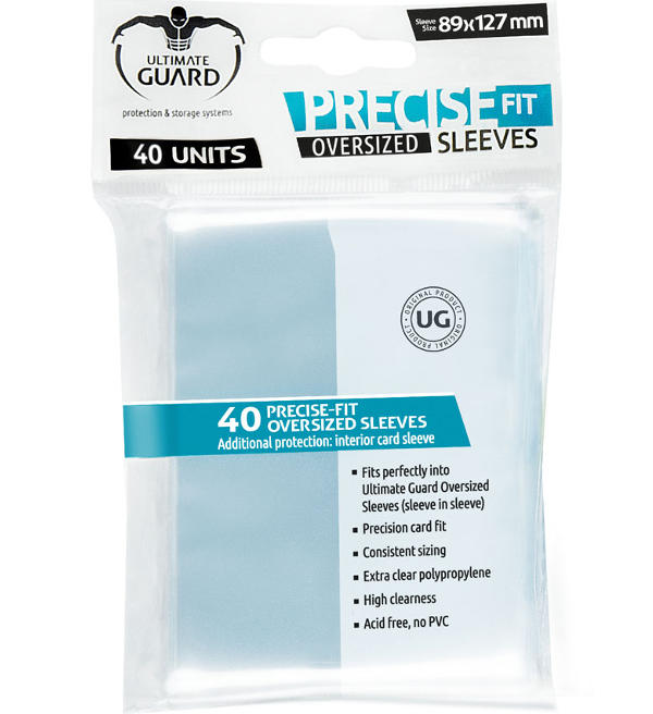 Estas fundas se adaptan perfectamente a las Oversized de Ultimate Guard (funda en funda). Perfectas para Magic: The Gathering™ Commander y otras cartas "oversized". 40 fundas por paquete.