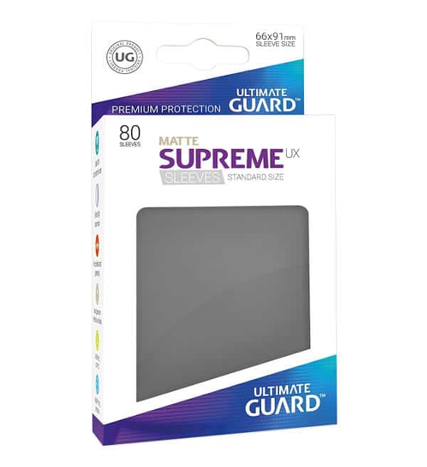 80 "UG Supreme UX Sleeves - Standard mate gris oscuro" para proteger tus cartas.