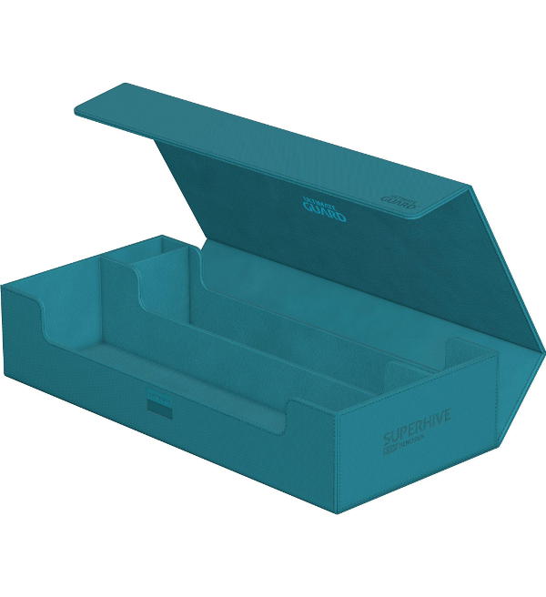 Superhive ofrece espacio para todo lo que necesitas durante tus partidas. Con compartimentos para múltiples cajas, dos tapetes de juego y accesorios, el Superhive te ofrece un sinfín de usos. Ideal para combinar con Ultimate Guard Sidewinders, puedes colocar en la caja * hasta 550+ cartas de doble funda, 650+ cartas de una sola funda o más de 1100 cartas sin funda de tamaño estándar. El cierre magnético ZnapClaw, mantiene el Superhive cerrado en todo momento.