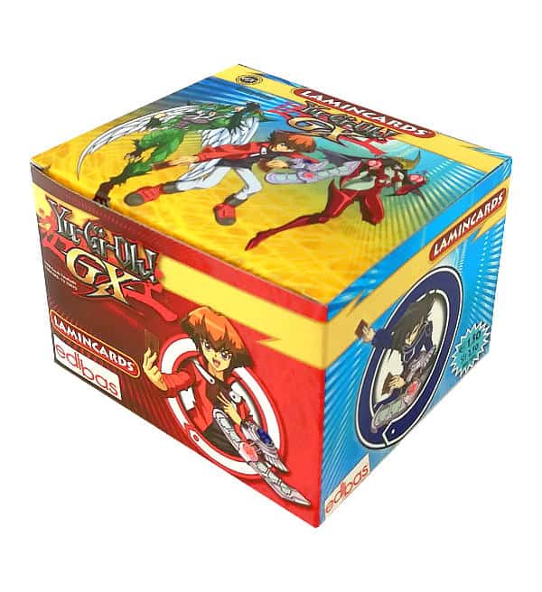 Caja de 24 sobres de la colección "Yu-Gi-Oh! GX Lamincards". Cada sobre contiene 6 cartas, lo que hace un total de 144 Lamincards por caja.